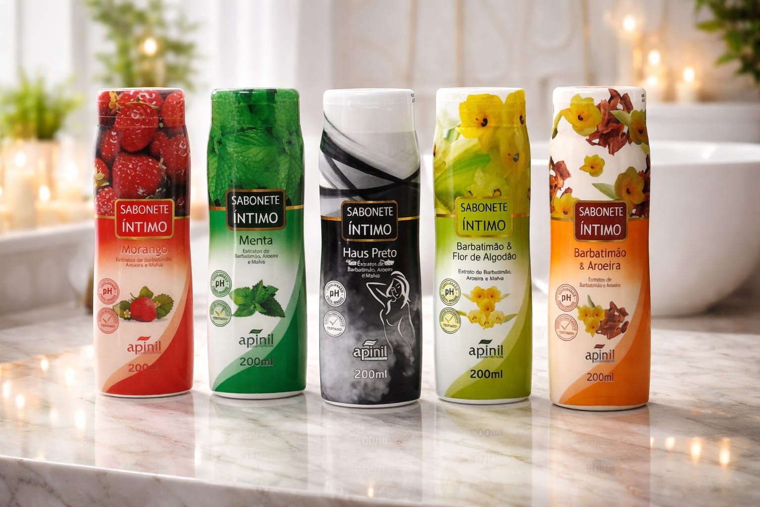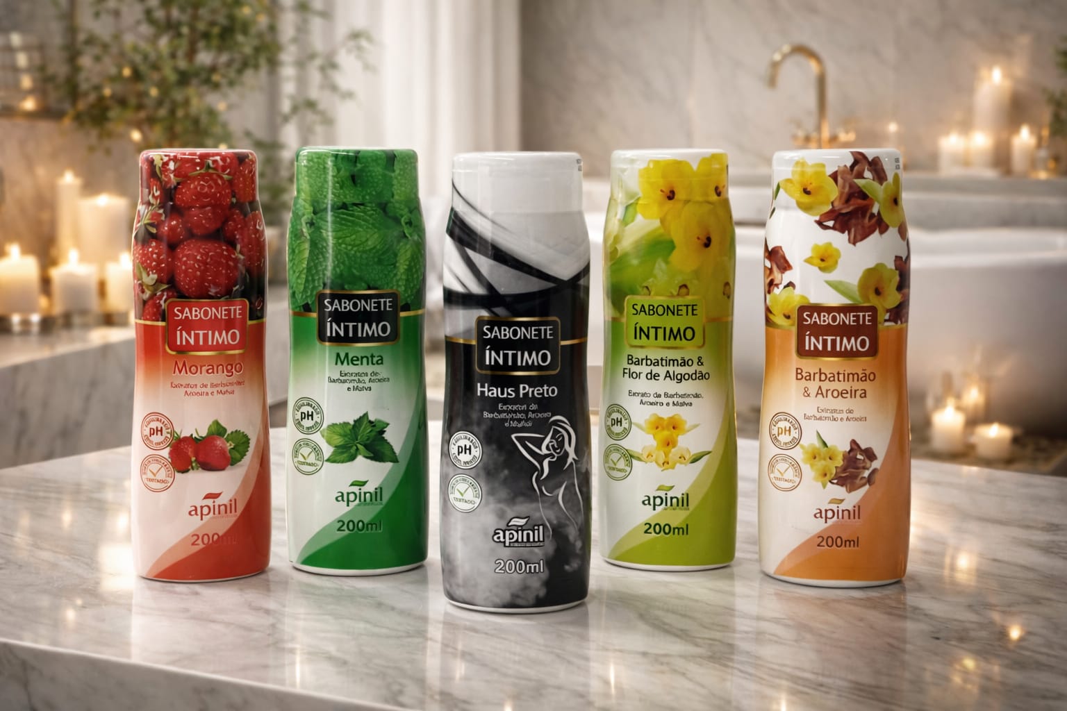O Sabonete Íntimo Apinil é um produto para higiene íntima feminina e masculina, formulado com extratos naturais como Aroeira, Barbatimão e Malva para controle de pH, hidratação, suavização e sensação de frescor, mantendo a saúde da região íntima e prevenindo infecções